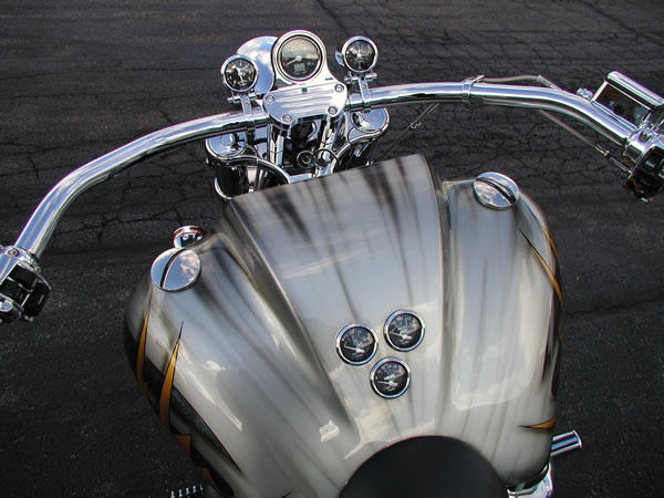 MBHC Ram Air fuel tank, Pro-street gauges, 1¼ handlebars, chrome