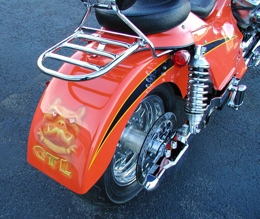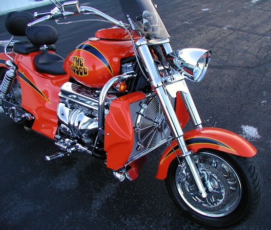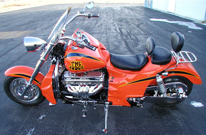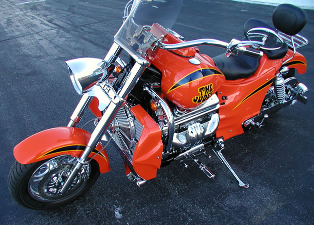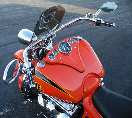 caps, Rocket headlight, chrome crash bars, chrome peg sliders,