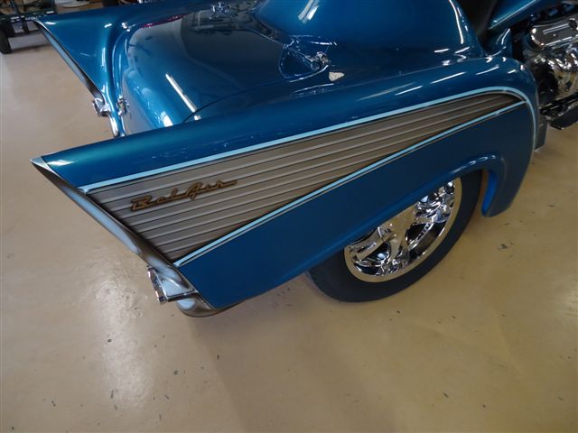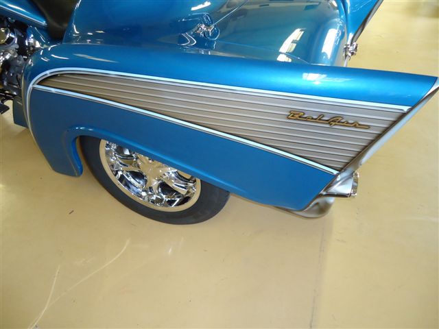- Teal blue with custom 57' style airbrush graphics.